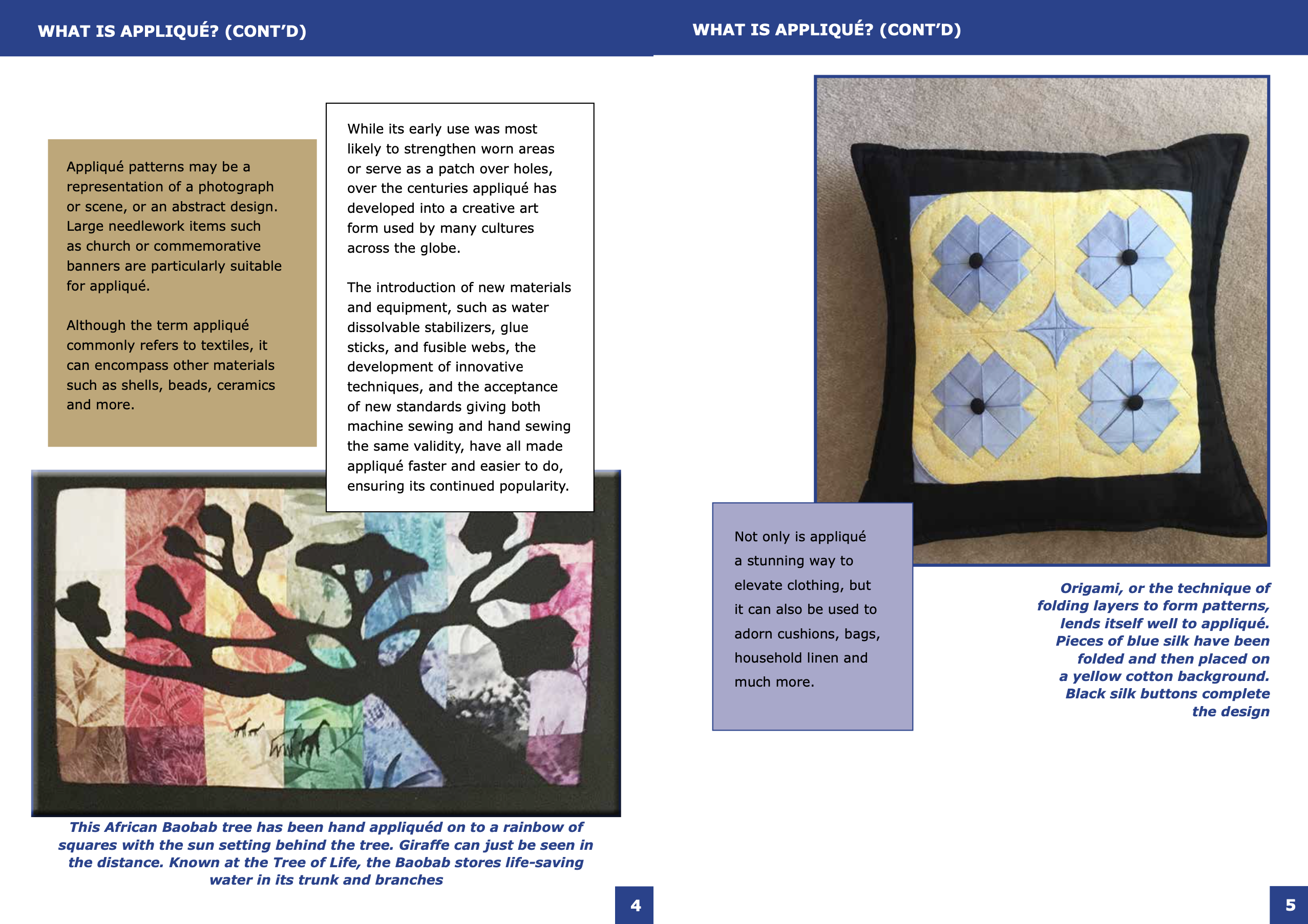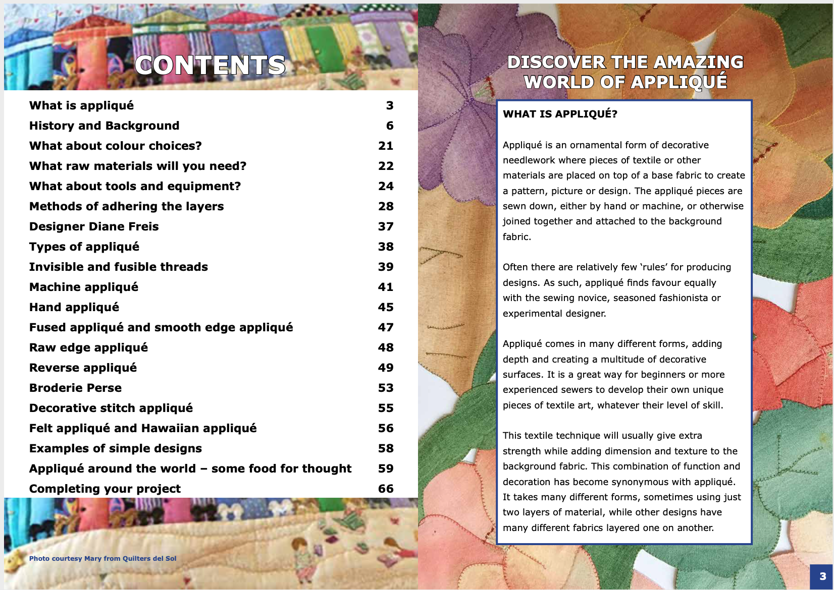 Through numerous colour photos, this 68 page book opens the door to a fascinating craft showing what an important role appliqué plays in many cultures around the world.